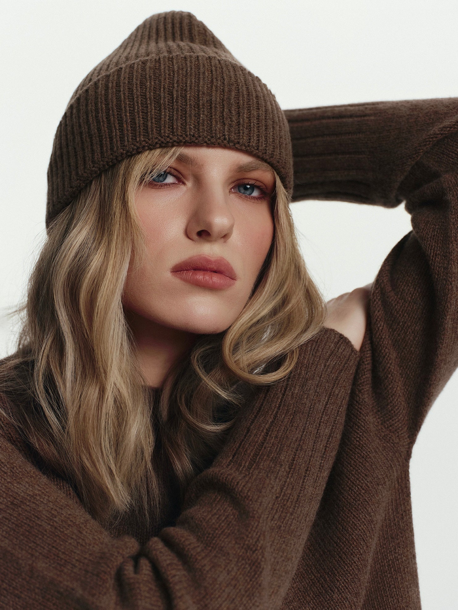 Кашемірова шапка-біні з м’якої преміальної пряжі