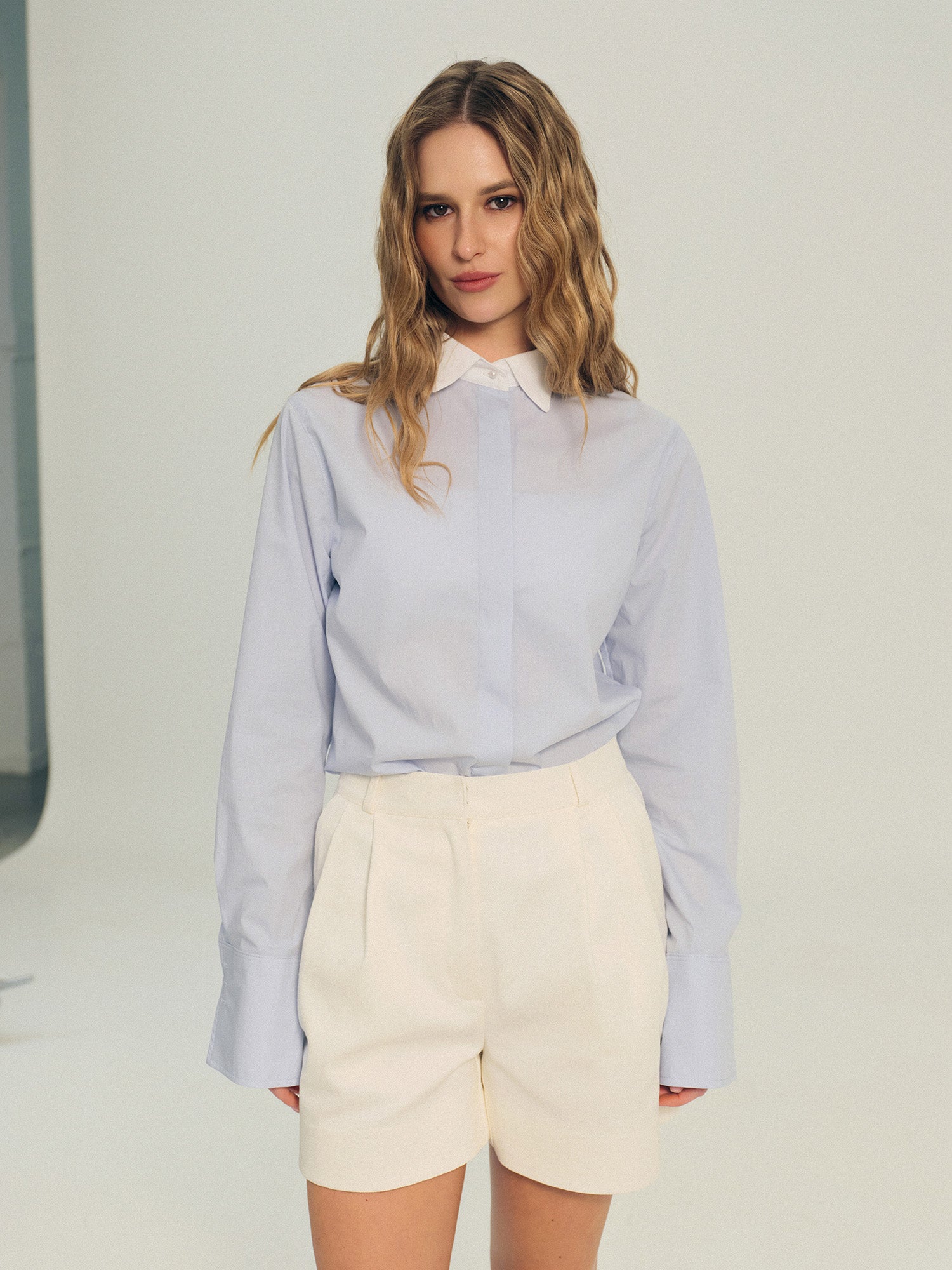 Regular fit shirt with accented white collar and buttoned cuffs in ice blue cotton