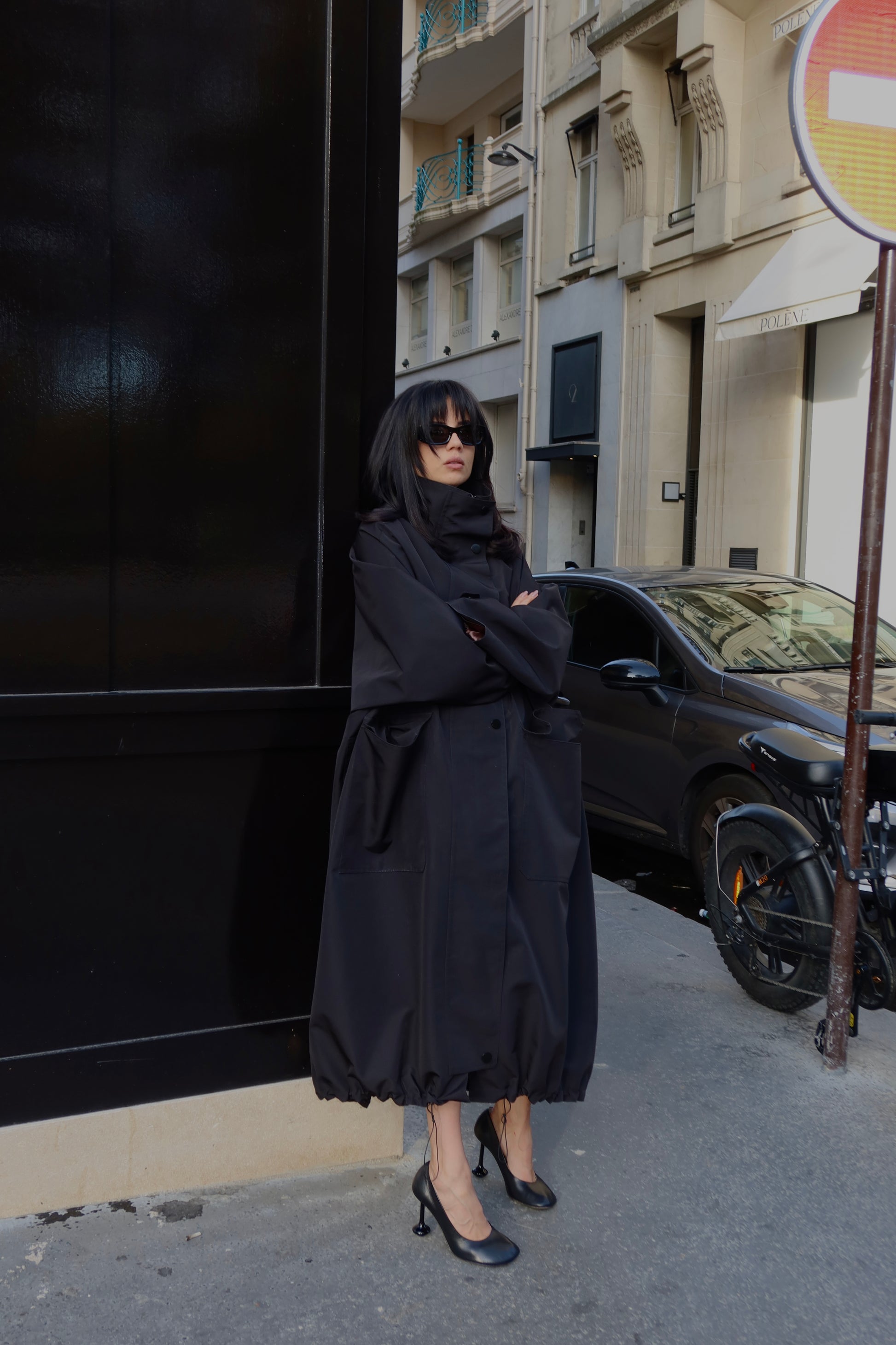Maxi volume lined trench parka in waterproof cotton blend fabric