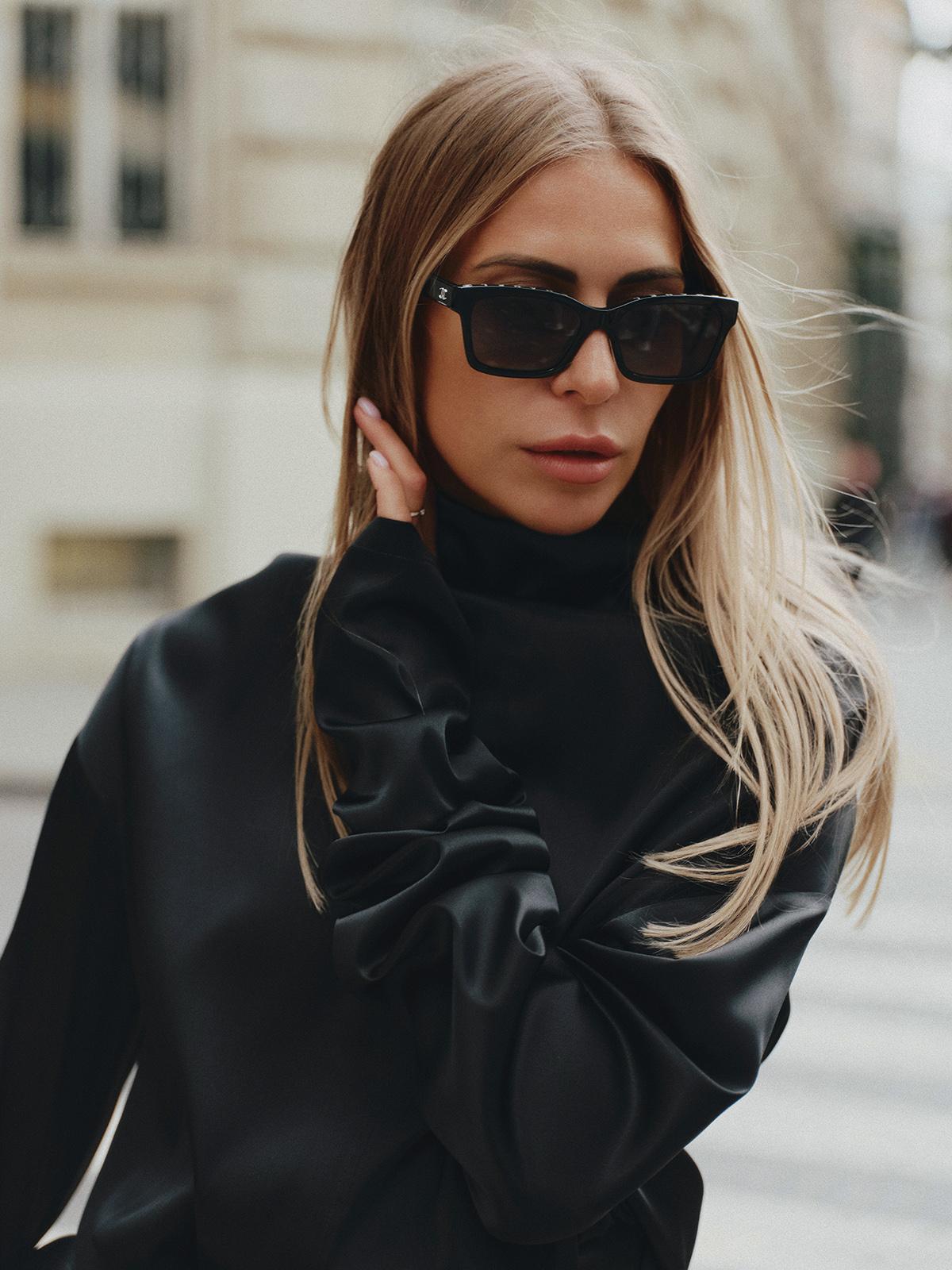 High-neck loose fit long-sleeve top in silk viscose blend