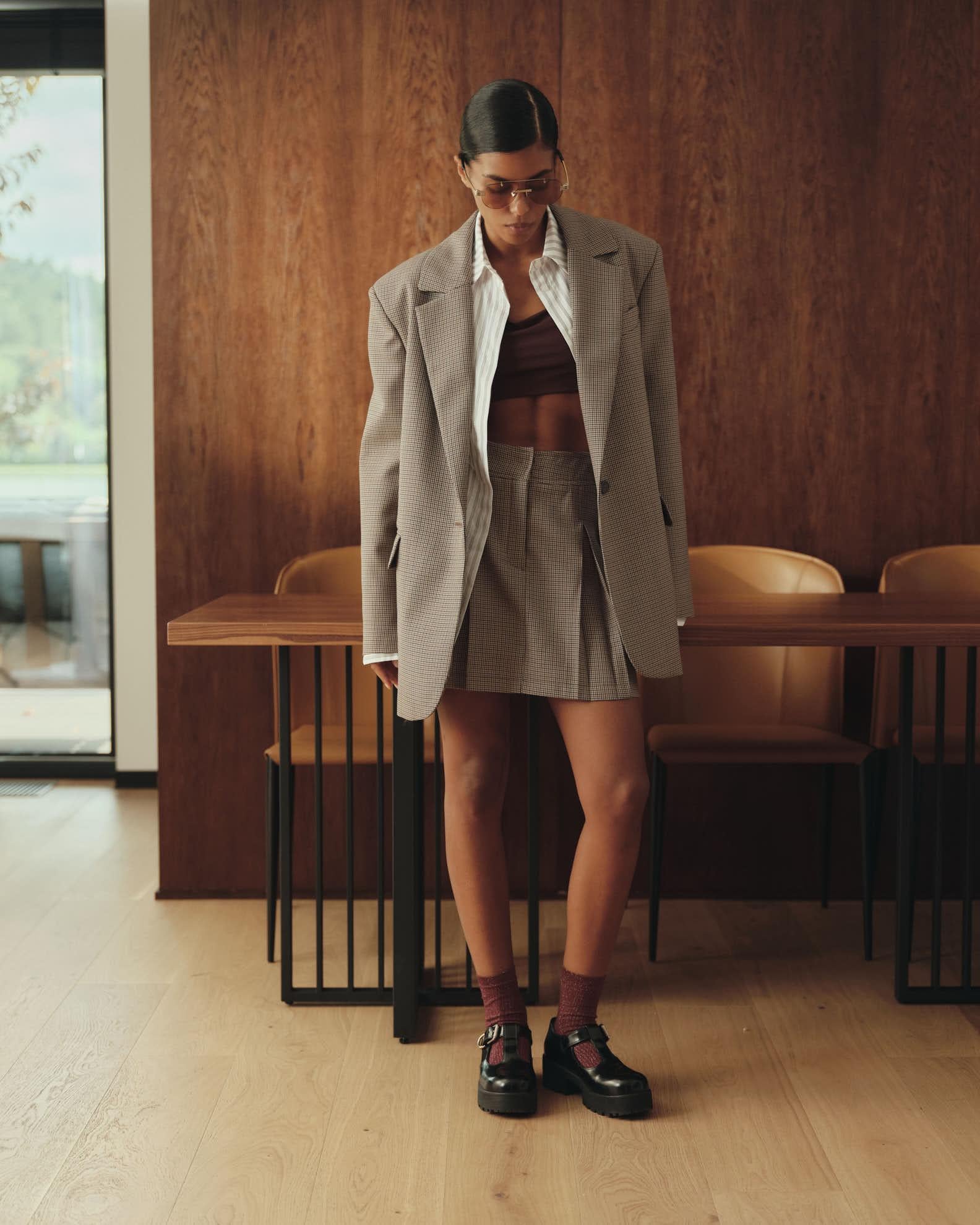 Two-piece set with Ralph contemporary fit wool jacket and mini skirt